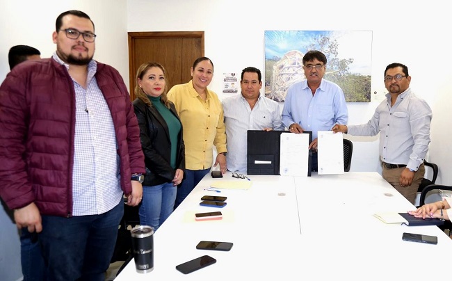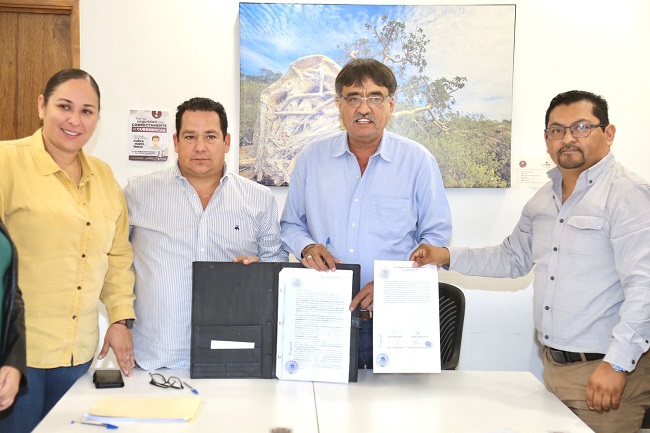 Para oficializar el proceso de escrituración a nombre del Gobierno de Los Cabos, se realizó la firma correspondiente del documento por el presidente municipal Oscar Leggs Castro, la síndica municipal Alondra Torres García, el secretario general Ariel Castro Cárdenas y representantes de la Notaría Núm. 1, que dirige Armando Aguilar Mondragón.
