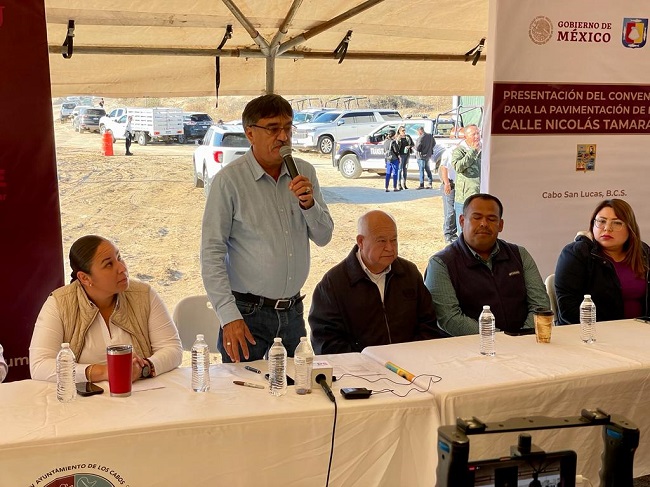 En conferencia de prensa a un costado de la avenida de terracería coloquialmente conocida como la “Brecha Tamaral”, el alcalde Oscar Leggs Castro, acompañado del gobernador del estado Víctor Manuel Castro Cosío y del representante del Gobierno Federal en Los Cabos Daniel Torres Mendoza, dieron a conocer el convenio que finalmente autoriza los recursos para la pavimentación completa de una de las avenidas más transitadas en Cabo San Lucas.