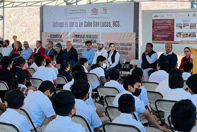 En el marco de la inauguración de aulas didácticas en la escuela secundaria Constituyentes de Baja California Sur y la primaria Francisco Romero Escopinichi, en Cabo San Lucas, -por parte de autoridades estatales y municipales-, el alcalde Oscar Leggs Castro, reiteró el compromiso de continuar trabajando a favor de la educación; por lo que se comprometió a dar respuesta a las solicitudes que beneficien a la comunidad estudiantil.