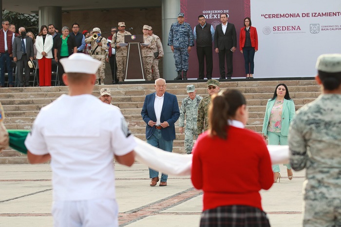 Se entonó el Himno Nacional al pie de la bandera tricolor, donde estuvo acompañado por integrantes de la Mesa de Seguridad, autoridades civiles, militares, servidores públicos y jóvenes estudiantes, quienes presenciaron dicho acto.