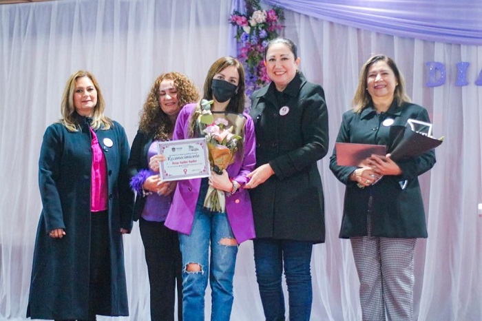 Al concluir la ponencia, representantes de la delegación de Guerrero Negro, entregaron reconocimientos a mujeres que destacan en la comunidad por su desempeño laboral y social, siendo galardonadas: Verónica de la Toba Villavicencio, Argelia Madrigal Ibarra, Durga Aguilar Aguilar, Dayana Hernández y Marisela González Rincón.