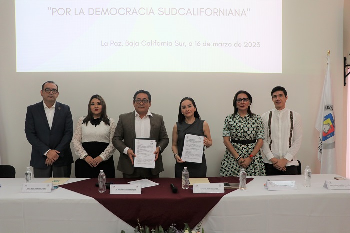 Con el objetivo de establecer las bases y coordinar acciones a fin de establecer y desarrollar estrategias para el intercambio de información, capacitación, difusión y divulgación para garantizar el avance de la vida democrática, fomentar la participación ciudadana, estimular la cultura electoral y proteger las políticas de género y no discriminación, el Instituto Estatal Electoral de Baja California Sur y el Tribunal Estatal Electoral de Baja California Sur, celebraron la firma de un convenio general de colaboración.
