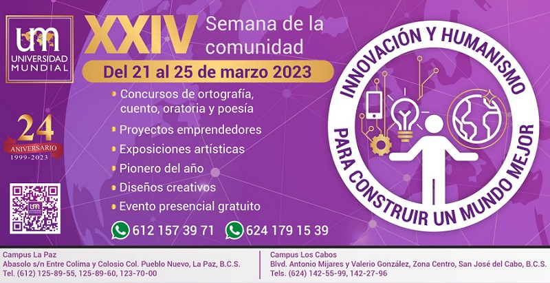 Tras tres ediciones en versión digital, regresa la Semana de la comunidad de la Universidad Mundial a Baja California Sur.