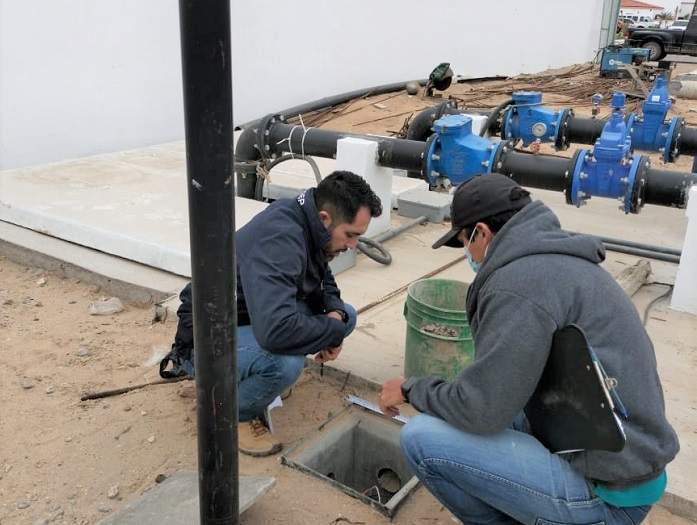 Con el objetivo de dar seguimiento a las obras que se realizan en Guerrero Negro para la rehabilitación de los cárcamos de rebombeo de aguas residuales, la directora general de la Comisión Estatal del Agua (CEA), Tatiana Davis Monzón, acudió al sitio donde actualmente se tiene en promedio un 80 por ciento de avance.