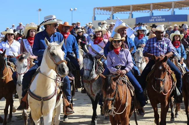 Entrado el mediodía, el desfile a caballo ingresó a las calles del Centro Histórico de San José del Cabo donde posteriormente las y los jinetes recibieron la bendición del párroco de la Misión de San José. Más tarde, la cabalgata tomó dirección hacia el lugar donde se encuentra instalada la Expo Agrícola y Ganadera donde se realizó un convivio para las y los cabalgantes.