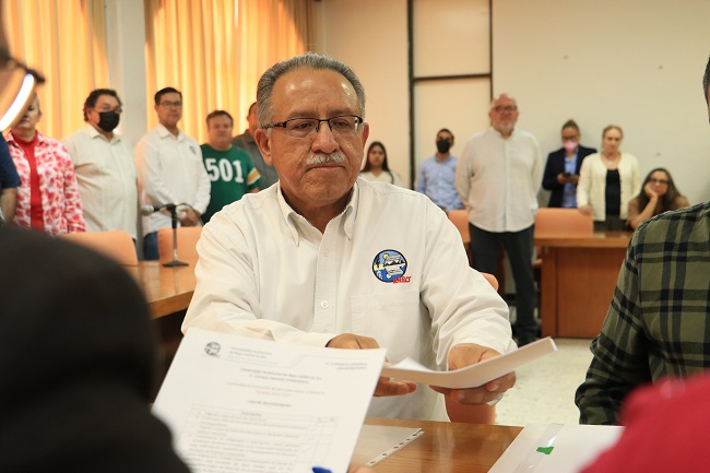 La Comisión Electoral de la institución fue la encargada de recibir la documentación que, en apego a los tiempos que marca la convocatoria emanada de la propia legislación universitaria, debían presentar las personas interesadas en participar en el proceso.