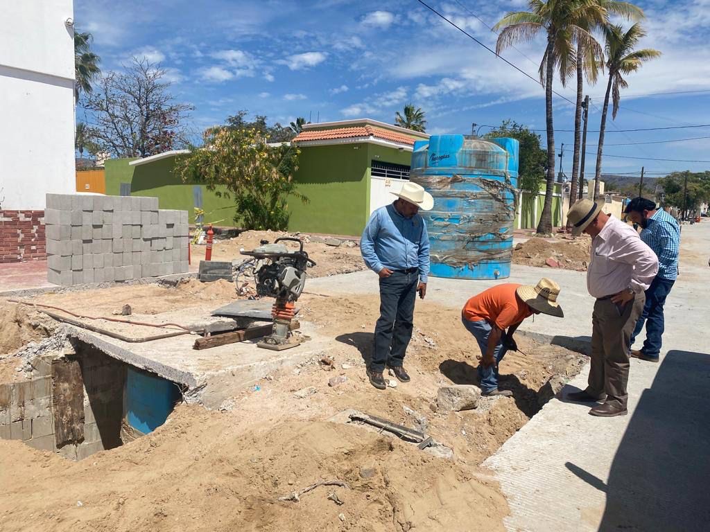 Personal que labora en los trabajos de levantamiento y construcción de las banquetas sobre la calles Márquez de León frente a la tienda de ropa denominada El Uniforme quienes ubicaron las cisternas al estar realizando sus labores