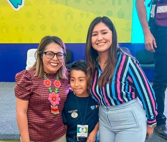 La presidenta honorífica del Sistema para el Desarrollo Integral de la Familia en Mulegé, Gyselle Hernández Aguilar, en compañía de niñas, niños y jóvenes del municipio, participaron en la presentación de resultados de la Consulta Nacional ¿Me Escuchas? 2022.