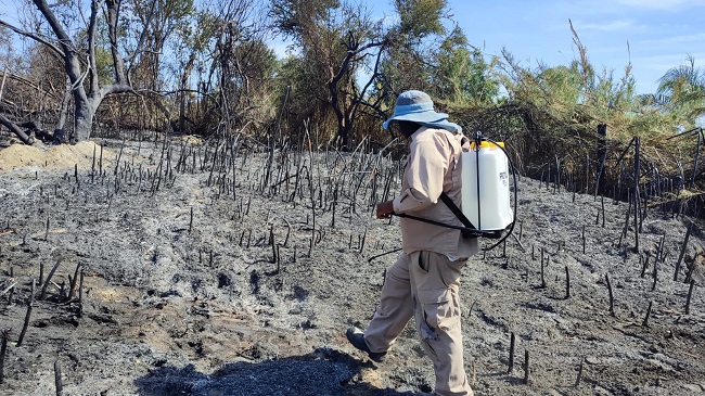 Personal de la Dirección General de Ecología y Medio Ambiente que encabeza Raúl Verdugo Montaño, llevó a cabo un recorrido por la zona que resultó afectada tras el incendio ocurrido este lunes en las inmediaciones del área natural protegida Estero de San José del Cabo, con la finalidad de verificar que el área este totalmente apagada y de esta forma llevar a cabo el recuento de los daños en materia ecológica.