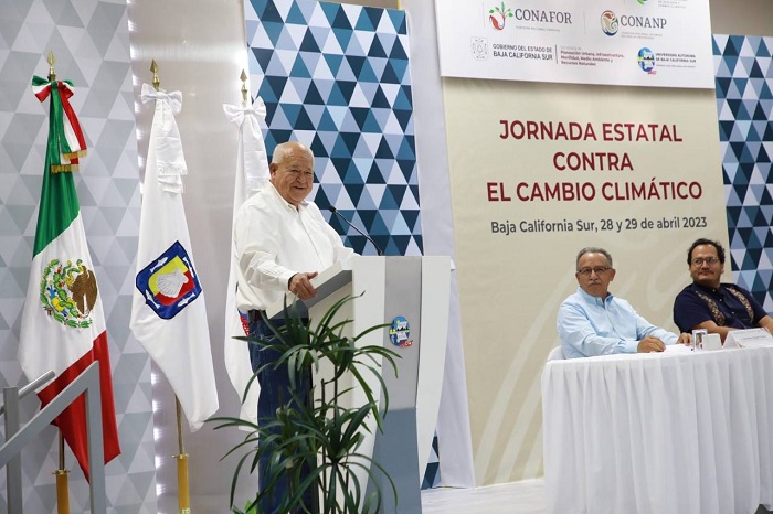 El gobernador Víctor Manuel Castro Cosío puso en marcha los trabajos de la Jornada Estatal de Acción contra el Cambio Climático; ahí, dijo “son bienvenidos todos los esfuerzos de buena voluntad para cuidar el medio ambiente y que el cambio no nos sorprenda; porque sin esta visión, no funcionará el desarrollo de Baja California Sur y de México.