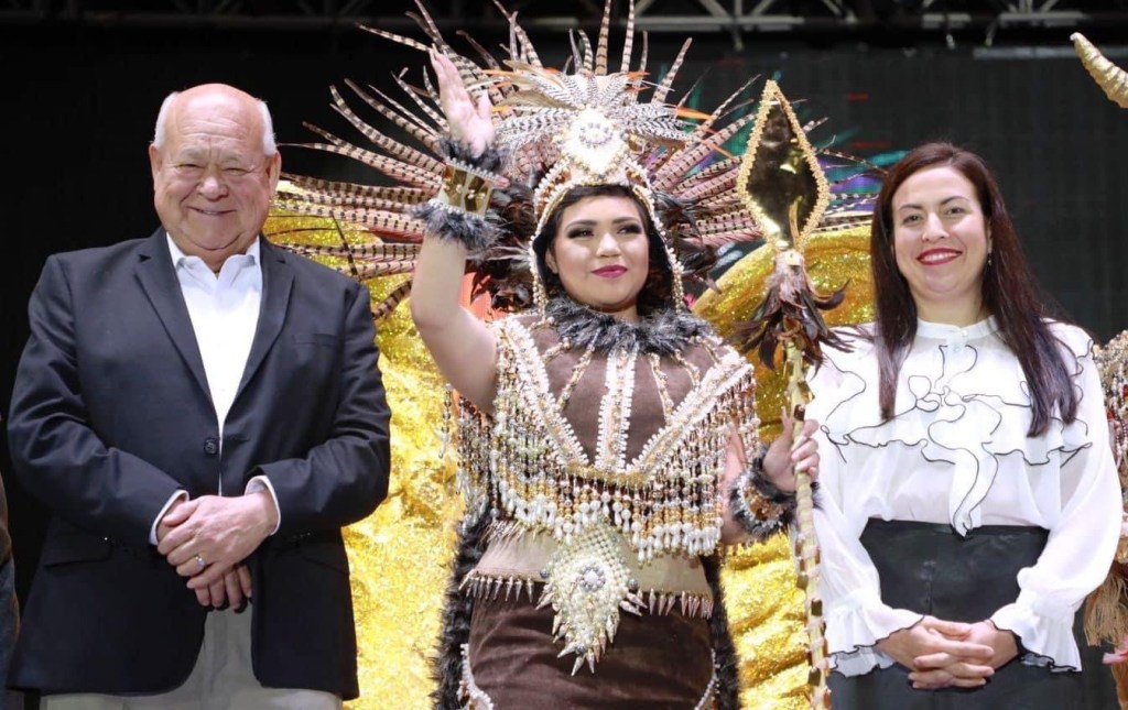 La Presidenta Municipal, Milena Quiroga Romero acompañada del gobernador, Víctor Castro Cosío y la Alcaldesa de Comondú, Ileana Talamantes, llevaron a cabo la coronación de Marialondra Murillo Meza, Reina Calafia 2023, en el inicio de las actividades del 488 Aniversario de Fiestas de Fundación de La Paz.