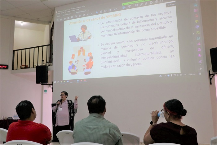 El Instituto Estatal Electoral de Baja California Sur impartió a los partidos políticos con registro local una capacitación respecto a los lineamientos para que los partidos políticos, prevengan, reparen, atiendan, sancionen y erradiquen la violencia política contra las mujeres en razón de género, así como la integración de los órganos internos de los partidos políticos que deberán dar seguimiento a estos temas, además de la verificación del porcentaje de afiliaciones.