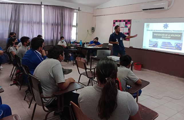 Con el objetivo de prevenir actos que pongan en riesgo la integridad de estudiantes de cada plantel escolar del municipio de Los Cabos, la Dirección General de Seguridad Pública, Policía Preventiva y Tránsito Municipal a través del equipo de la Dirección de Atención Ciudadana y Vinculación Social, imparte en aulas estudiantiles del municipio pláticas tituladas: «Prevención de la violencia escolar».