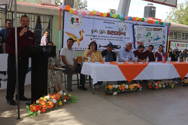 La Secretaría de Educación Pública de Baja California Sur, en coordinación con el Instituto Sudcaliforniano de Cultura, presentó el libro titulado “A la Bestia”, diseñado por estudiantes de diferentes generaciones de la escuela primaria Francisco González Bocanegra, informó el profesor Guillermo Romero Villavicencio, impulsor del proyecto y jefe del Departamento de Evaluación y Seguimiento en la SEP.