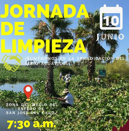 A fin de seguir con el retiro de lirio del espejo de agua en el Estero de San José del Cabo, la Dirección General de Ecología y Medio Ambiente que encabeza Raúl Verdugo Montaño, hace extensiva la invitación a integrantes de Asociaciones Civiles, Instituciones Educativas y público en general para que se sumen a la jornada que se realizará este sábado 10 de junio en punto de las 7:00 de la mañana.