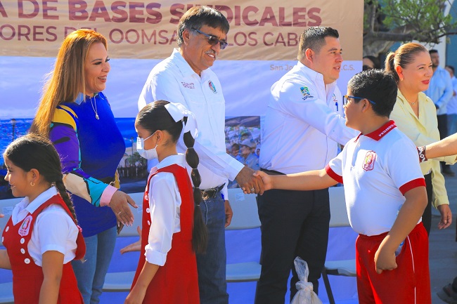 Fue en el marco de la entrega de 11 bases sindicales a colaboradores del Oomsapas Los Cabos, que de manos del alcalde Oscar Leggs el personal docente recibió el apoyo en insumos que constan de balones de fútbol, basquetbol, voleibol y en algunos casos de handball, así como conos, platos y aros para complementar algunas actividades físicas recreativas que hacían falta en las escuelas del municipio.