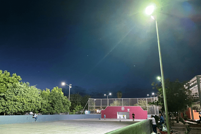 “Trabajando de la mano con vecinas y vecinos de la colonia Indeco, se realizó la instalación de reflectores en la cancha del parque ´Los Mangos´, con la finalidad de que se puedan realizar las actividades deportivas sin inconvenientes y de la mejor forma posible, es por eso que invitamos a hacer el uso correcto de este tipo de instalaciones así como de espacios públicos” concluyó Cabral Ramírez.