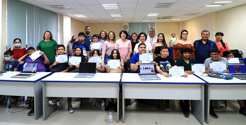 Al mismo tiempo, felicitó a las y los jóvenes que concluyeron el taller exitosamente, pues los proyectos y aprendizajes mostrados durante la exposición reflejan ese esfuerzo que imprimieron en cada una de las sesiones, pero sobre todo su gran talento y potencial para el uso de las tecnologías.