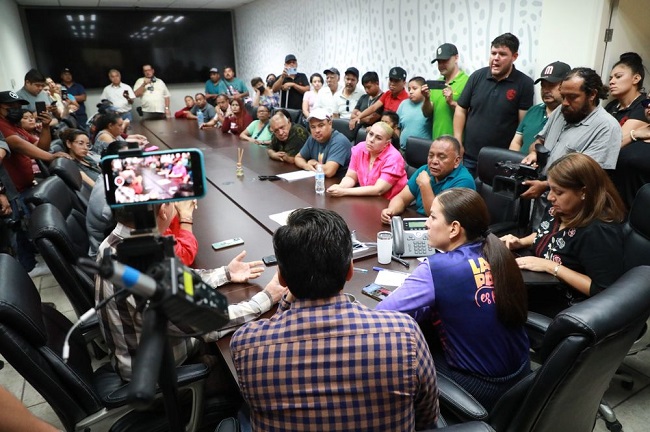 La reunión tuvo lugar en la Sala de Juntas del Ayuntamiento de La Paz, la Alcaldesa estuvo acompañada por el Secretario General, Pavel Castro Río expresando “vamos a trabajar juntos una propuesta de reubicación en el caso de quienes están en la vía pública, que les garantice estar ordenados, que sea funcional y atractivo para ellos, que no les vaya a generar conflicto”.