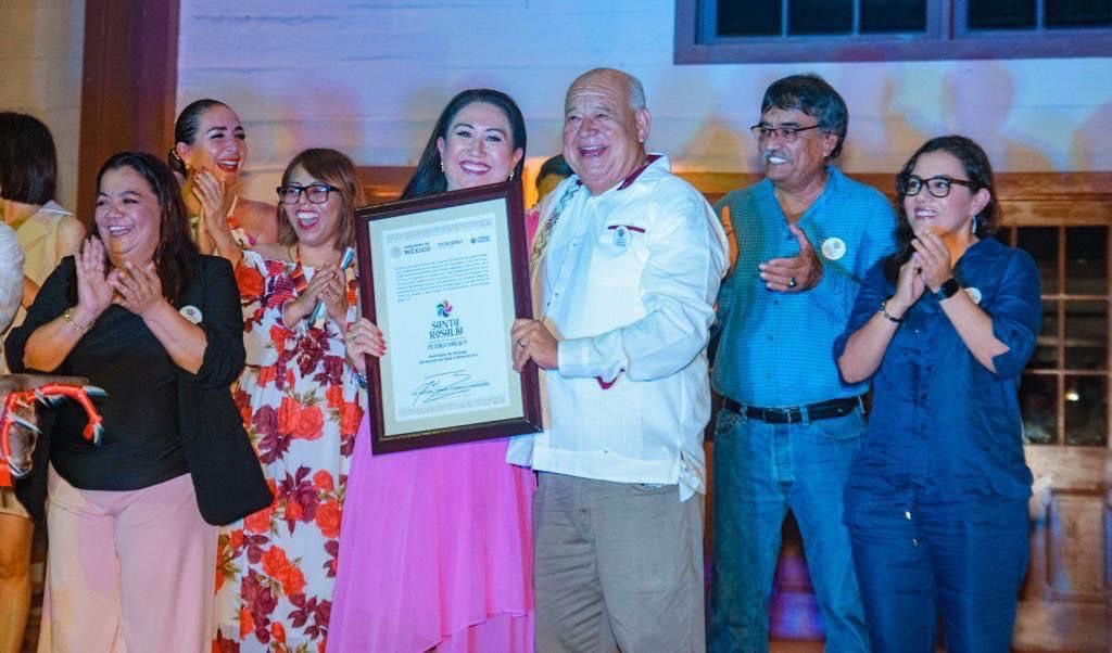 Durante una emotiva ceremonia realizada en la explanada de la recién rehabilitada Biblioteca Mahatma Gandhi, la Presidenta Municipal recibió de parte del Gobernador del Estado y del Subsecretario de Turismo a nivel estatal, documento que acredita a Santa Rosalía como pueblo mágico. Una insignia que es otorgada a ciudades y poblados que conservan atributos culturales y riqueza natural destacadas.