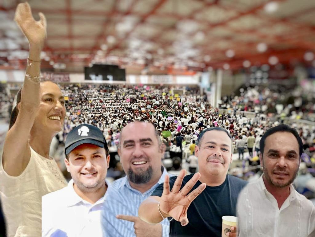 Y EN PUNTO de las cuatro de la tarde con veinte minutos llega SHEINBAUM PARDO al escenarioen medio de algarabía, sube al estrado y agradece la presencia de los asistentes y de inmediato a lo que va: se dice defensora de la Cuarta Transformación, darle continuidad al trabajo logrado por ANDRÉS MANUEL LÓPEZ OBRADOR y reconoce los esfuerzos políticos e institucionales de VÍCTOR MANUEL CASTRO COSÍO y de MILENA QUIROGA ROMERO.