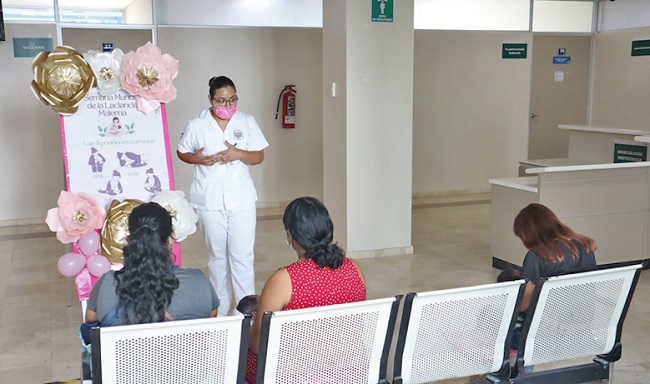 Estas actividades se efectuaron en la sala de espera de consulta externa como parte de la Semana Mundial de la Lactancia Materna 2023, que cada año se conmemora en la primera semana de agosto con el objetivo de alentar a las mujeres para que apliquen este método de alimentación con sus bebés a fin de reciban de nutrientes necesarios para su crecimiento saludable, dijo la coordinadora de Salud Reproductiva, Viani Gachuz Martínez.