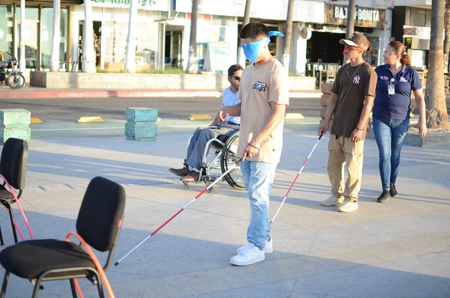 El Instituto Sudcaliforniano para la Inclusión de las Personas con Discapacidad (ISIPD), en suma de esfuerzos con la Coordinación de Atención a Personas con Discapacidad del Ayuntamiento de La Paz, llevó a cabo la campaña “Inclúyete en mi mundo” la cual es impulsada al utilizar antifaces y bastones para quienes hagan uso de ellos, reconozcan la forma en la que una persona con ceguera utiliza obstáculos en su caminar y al mismo tiempo les muestran como las personas con discapacidad visual utilizan sus pies y/o bastón para utilizar la guía podo táctil.