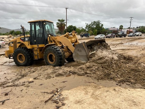 Desde hace ya varias horas por instrucción del alcalde de Los Cabos Oscar Leggs Castro, las principales calles y avenidas con mayor afectación tras el paso del huracán “Hilary” están siendo intervenidas por maquinaria y personal de la Dirección General de Servicios públicos para permitir el tránsito vehicular de la población.