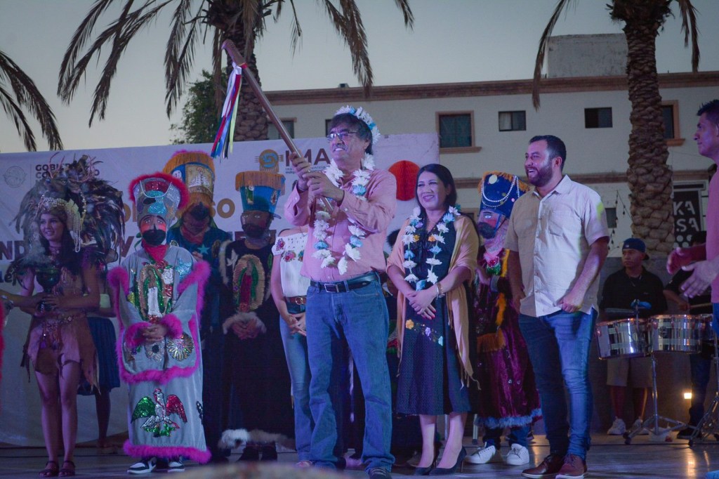 “Tienen nuestro reconocimiento especial porque han venido a enriquecer la cultura de Los Cabos y de Baja California Sur. Son un ejemplo de tenacidad, de esfuerzo y de trabajo por promover la tradición y cultura de distintos lugares de la patria; hoy, se concentran en Los Cabos para seguir preservando las tradicionesy seguiremos trabajando para que a las comunidades indígenas les vaya bien, de manera organizada y priorizando susnecesidades”, destacó al tiempo que era distinguido al recibir el bastón de mando, un elemento importante en varias culturas indígenas de México que simboliza la máxima autoridad, tanto espiritual como política de quien lo ostenta dentro del sistema de organización comunitaria.