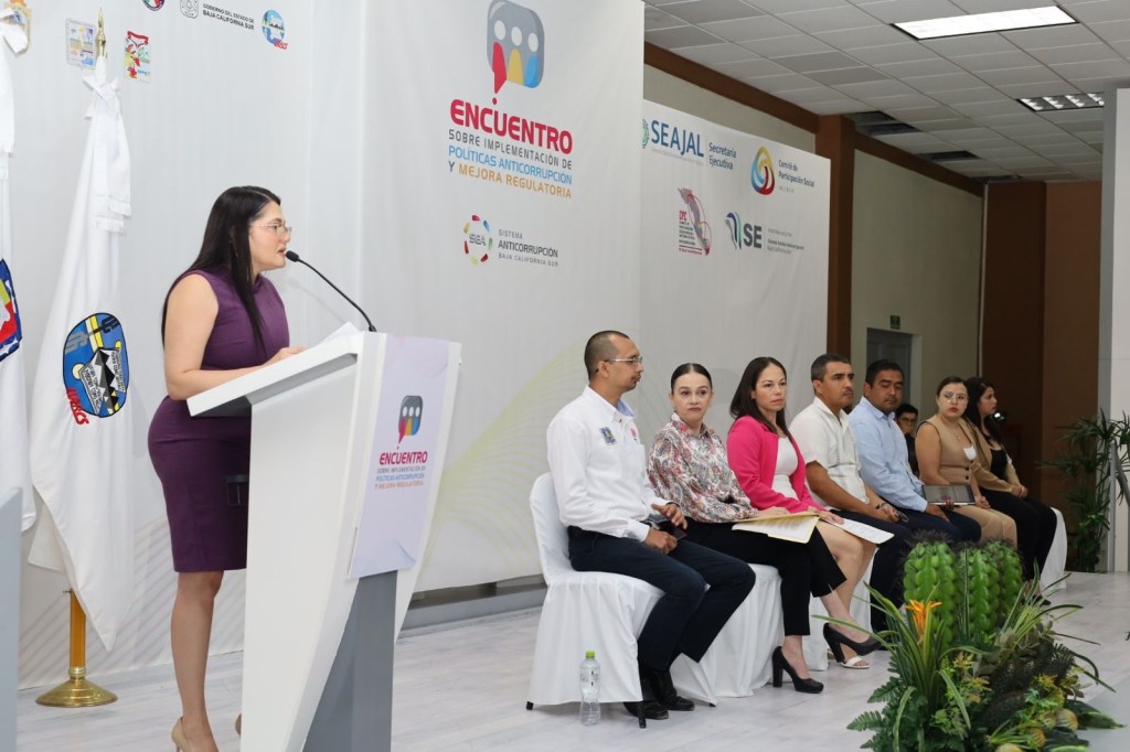 Con la suma de voluntades y coordinación de esfuerzos se lograrán avances importantes en materia de mejora regulatoria y políticas anticorrupción, expresó la contralora Rosa Cristina Buendia Soto, en representación del Gobernador Víctor Castro al participar en el Encuentro sobre implementación de Políticas Anticorrupción y Mejora Regulatoria organizado por el Sistema Anticorrupción de BCS.