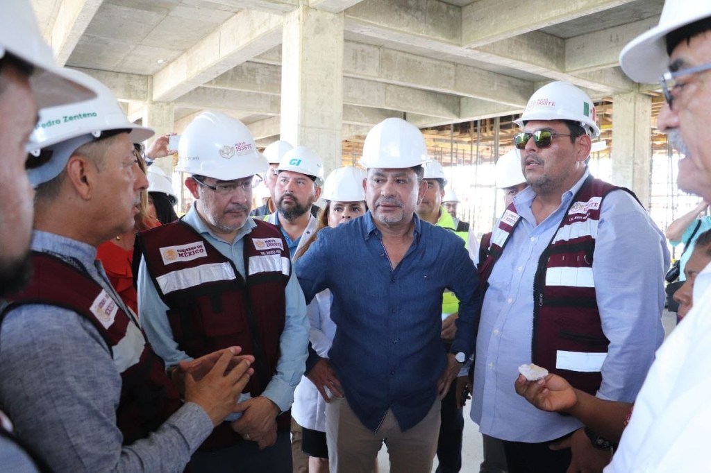Durante el recorrido, los funcionarios fueron testigo de los avances que presenta la construcción de lo que será un nuevo hospital que atenderá a 40 mil derechohabientes y usuarios con servicios médicos de especialidad y atención de primera.