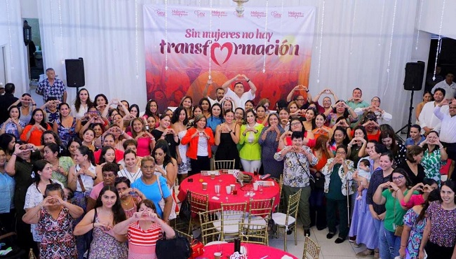 Añadió, “Hoy nos acompañan mujeres de gran valor, mujeres que luchan por nuestros derechos y que son un claro ejemplo de que cuando se quiere, se puede, pero para ello, hay que trabajar, pese a cualquier reto u obstáculo, y están en el lugar correcto porque la esencia de la cuarta transformación, somos nosotras, las mujeres y se acaba de demostrar a nivel nacional, así que vayamos en unidad traspasando fronteras”.