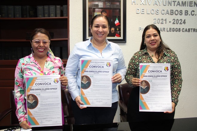 La Comisión Permanente de Igualdad de Género de la XVI Legislatura del Honorable Congreso del Estado de Baja California Sur, a través del Gobierno de Los Cabos que preside el alcalde Oscar Leggs Castro, convoca a los poderes públicos, instituciones de educación, sociedad civil organizada, partidos políticos y en general a las mujeres destacadas del municipio, a participar con propuestas para el otorgamiento de la medalla al mérito “María Dionisia Villarino Espinoza” edición 2023.