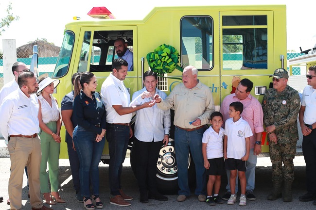 En esta visita a la comunidad de La Ribera, el Mandatario sudcaliforniano hizo entrega de un camión tipo “bombera”, donada por la institución de salud Saint Luke’s, y que viene a fortalecer la seguridad de las familias que residen en este destino del municipio de Los Cabos.