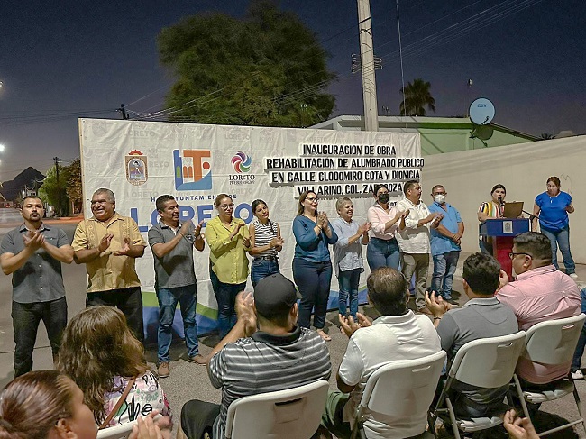 Con una inversión que asciende a los $370,000.00 pesos, que son recursos de los Fondos de aportaciones para la infraestructura social municipal (FAISMUN 2023), la alcaldesa de Loreto Paola Cota Davis, entregó la tarde de este jueves, la obra rehabilitación de alumbrado público en la colonia Zaragoza.