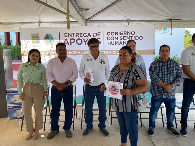 Finalmente, el munícipe cabeño acompañado de directores de las diversas áreas municipales y personas servidoras públicas, acudió a la comunidad de Miraflores donde entregaron 3 refrigeradores, 1 aire acondicionado, 1 lavadora, 1 máquina de coser, atendiendo con ello las solicitudes, destacó la titular de Atención Ciudadana Dina Margarita de La Paz Araiza: ‘’entregamos 19 tinacos que aportó el coordinador de la Mesa de Movilidad Ricardo Reyes, también entregamos colchones y latas de impermeabilizante; quiero comentarles que en la Dirección que represento atendemos y resolvemos como es la instrucción del alcalde Oscar Leggs Castro’’, concluyó.