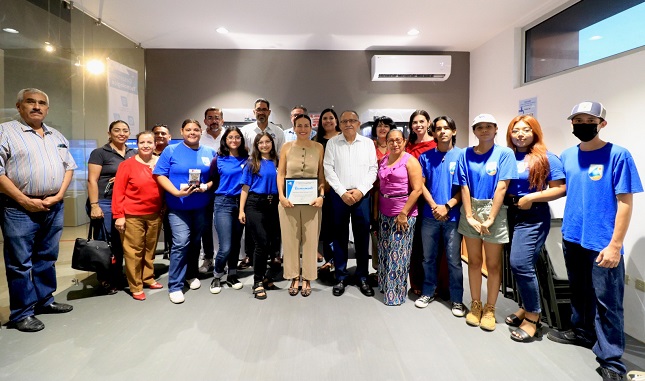 Destaca que en el mismo evento, la alcaldesa hizo entrega también de dos becas a estudiantes universitarios que participan en dicho proyecto por un monto de 3 mil pesos mensuales durante un año.
