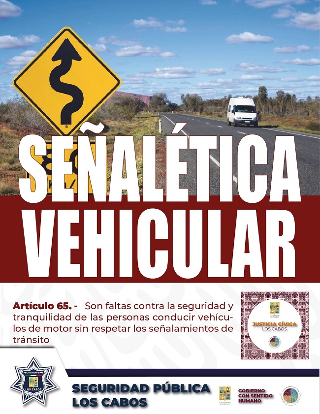 Con el objetivo de prevenir accidentes y mantener seguras las vialidades del municipio de Los Cabos, personal de la Dirección de Seguridad Pública, Policía Preventiva y Tránsito Municipal a cargo del Ing. Naval Jesús Antonio Gómez Rodríguez, impondrá sanciones a los conductores que hagan caso omiso a las diversas señaléticas de tránsito que se encuentran establecidas en la vía pública.