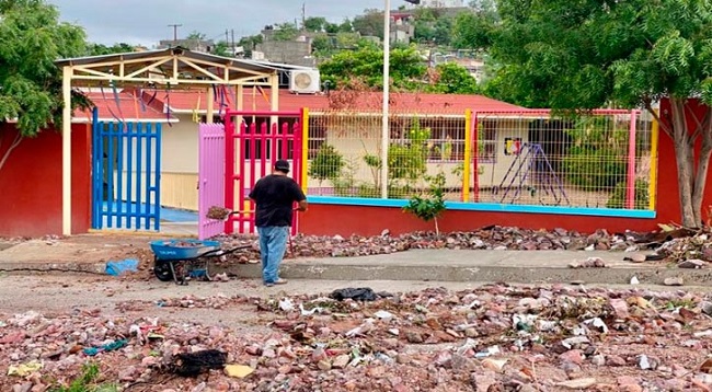 En cuanto a educación media, actualmente el Cetmar de La Paz continúa sin clases presenciales y han decidido hacerlo en línea, también por severos daños en sus instalaciones, anunciando el Mandatario estatal que ahí también se aplicarán recursos para su rehabilitación. (Por: Arturo Nieves).