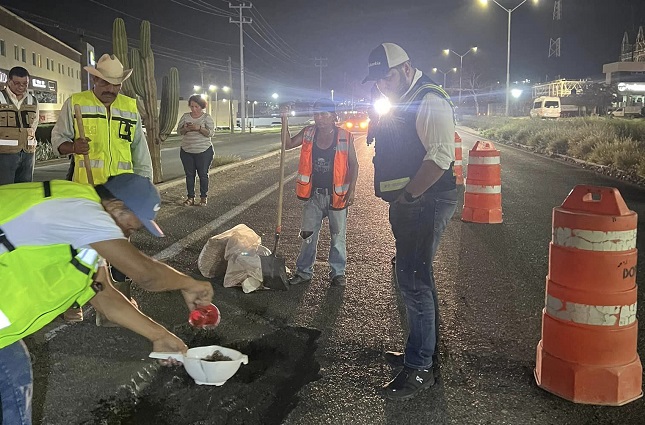 Por su parte, el titular de Obras y Públicas y Asentamientos Humanos del XIV Ayuntamiento, Ramón Adrian Marín Cota, remarcó que la puesta en marcha del Programa de Bacheo Nocturno atiende la instrucción del alcalde Oscar Leggs Castro de redoblar esfuerzos para con ello restaurar las principales vías de comunicación en el municipio que se resultaron afectadas ante el paso del huracán “Norma”.