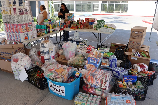 Ceseña Romero mencionó, que los apoyos que se estarán recibiendo en el centro de acopio son alimentos no perecederos tales como atún, frijoles, leche en polvo, lentejas, aceite azúcar, agua embotellada, artículos de higiene personal, de limpieza, hogar y médicos como gasas, suero, cubre bocas, cuadro básico de medicamentos, analgésicos y antibióticos.