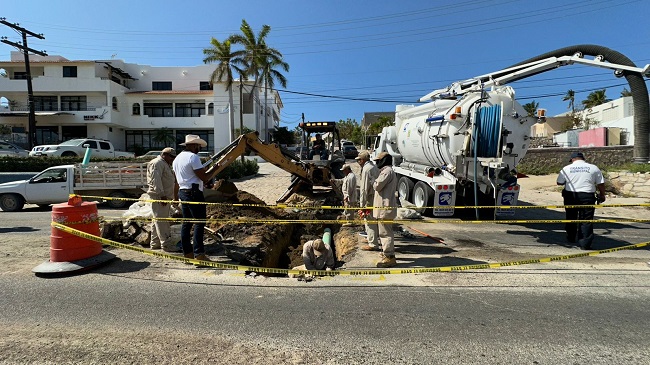 Respecto a la última reparación que se hizo este martes en la colonia 5 de Febrero en San José del Cabo, el director de Operación y Mantenimiento explicó que, luego de que se colapsara y provocara el derrame de aguas negras, se procedió a realizar el sondeo, la limpieza y reemplazo de 6 metros de tubería que permita resistir el rodamiento de camiones pesados y el flujo transitorio que se genera en la carretera Transpeninsular.