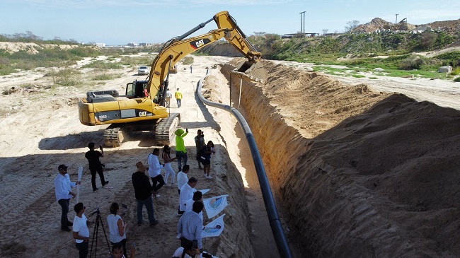 Por su parte el ingeniero Ismael Rodríguez Piña explicó que la obra integral consiste en la construcción de una línea de conducción de 16 pulgadas PEAD-RD-11 del cárcamo de rebombeo a la interconexión de línea existente del tanque 1000; la construcción de línea de conducción con base de tubería PEAD de 16 pulgadas RD 11 e interconexión de acueducto #1 al cárcamo de rebombeo de agua potable «La Sanluqueña», así como la construcción y equipamiento del cárcamo de rebombeo «La Sanluqueña» con capacidad de 100 litros por segundo; obras que beneficiarán a los habitantes de la parte alta de Cabo San Lucas.
