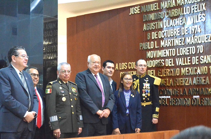 Así lo expresó el General de Brigada Diplomado de Estado Mayor, Jorge Antonio Maldonado Guevara, en la sesión solemne de este viernes, donde se llevó a cabo la develación de la leyenda con letras doradas: “2023 Año del Bicentenario del Heroico Colegio Militar” en uno de los muros al interior del Congreso del Estado del Estado, como reconocimiento a una de las instituciones más honorables y admirables que tiene el Estado Mexicano.