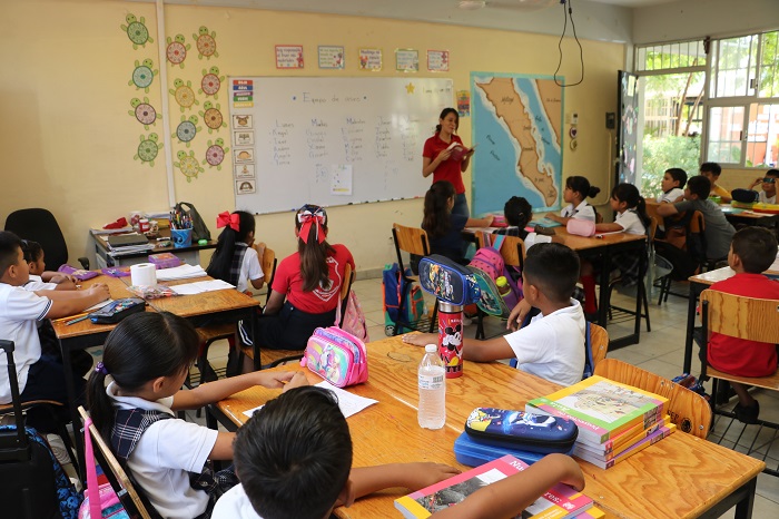 También hizo referencia a que en el presente año lectivo comenzó en preescolar, primaria y secundaria la aplicación de los planes, programas de estudio y materiales de la Nueva Escuela Mexicana, que busca transformar la sociedad a través del proceso educativo, el cual se desarrolla de acuerdo con los contextos sociales y las necesidades de las y los estudiantes.