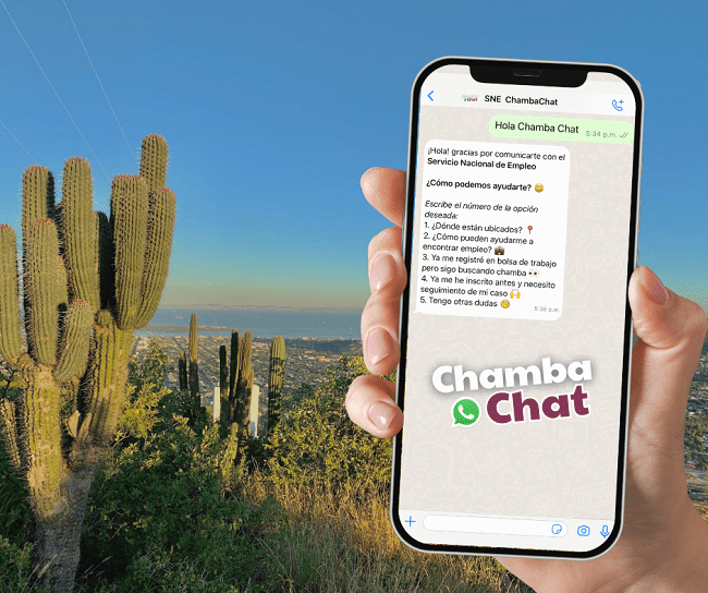 “ChambaChat” ya está disponible para el público en general a través del número 612 214 94 59, donde también se podrán resolver dudas sobre otros servicios que ofrece el SNE-BCS de manera automática como ubicación de módulos de atención, requisitos para programas de autoempleo, vacantes en el extranjero, entre otros.