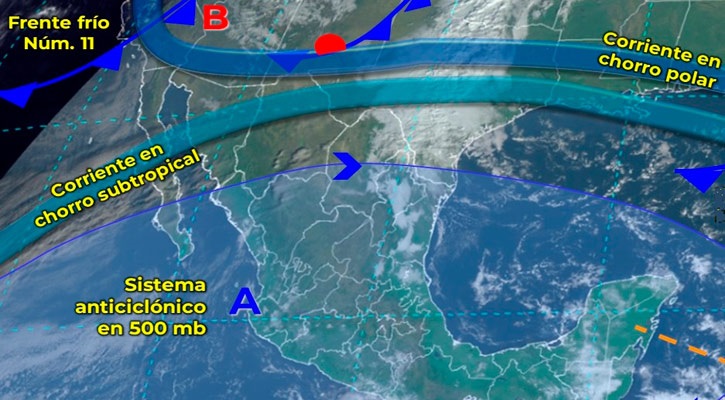 En tanto, salvo Ciudad Constitución y Los Cabos, que andarían por los 31 y 30 grados, el resto del Estado se mantendrá por debajo de los 30, debido al frente frío número 11, cuya masa de aire polar se asociará a las corrientes en chorro polar y subtropical, cuyos efectos ya se resienten.