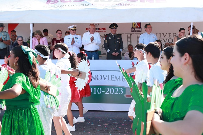 El gobernador Víctor Manuel Castro Cosío, acompañado por los titulares de los poderes Legislativo y Judicial, así como por los mandos de las Fuerzas Armadas, Guardia Civil y de la alcaldesa de La Paz, encabezó la ceremonia oficial y el desfile cívico deportivo alusivos al CXIII aniversario del inicio de la Revolución Mexicana.