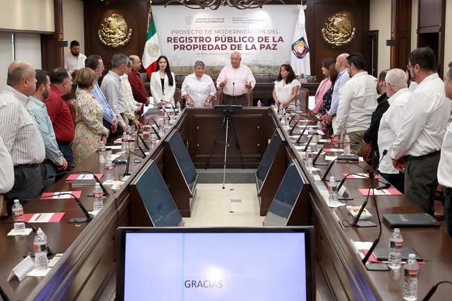 Acompañado por Griselda Martínez Vázquez, directora general de Inventarios y Modernización Registral y Catastral de Secretaría de Desarrollo Agrario, Territorial y Urbano (SEDATU), Karina Ramírez Miranda, directora general del Registro Público de la Propiedad y el Comercio en la entidad y de la Mtra. Bertha Montaño Cota, secretaria de Finanzas, el Ejecutivo estatal manifestó su interés de que la actualización de estas dependencias se lleve a los cinco municipios de BCS, para ello, habrán de contar con todo el respaldo de su gobierno, precisó.