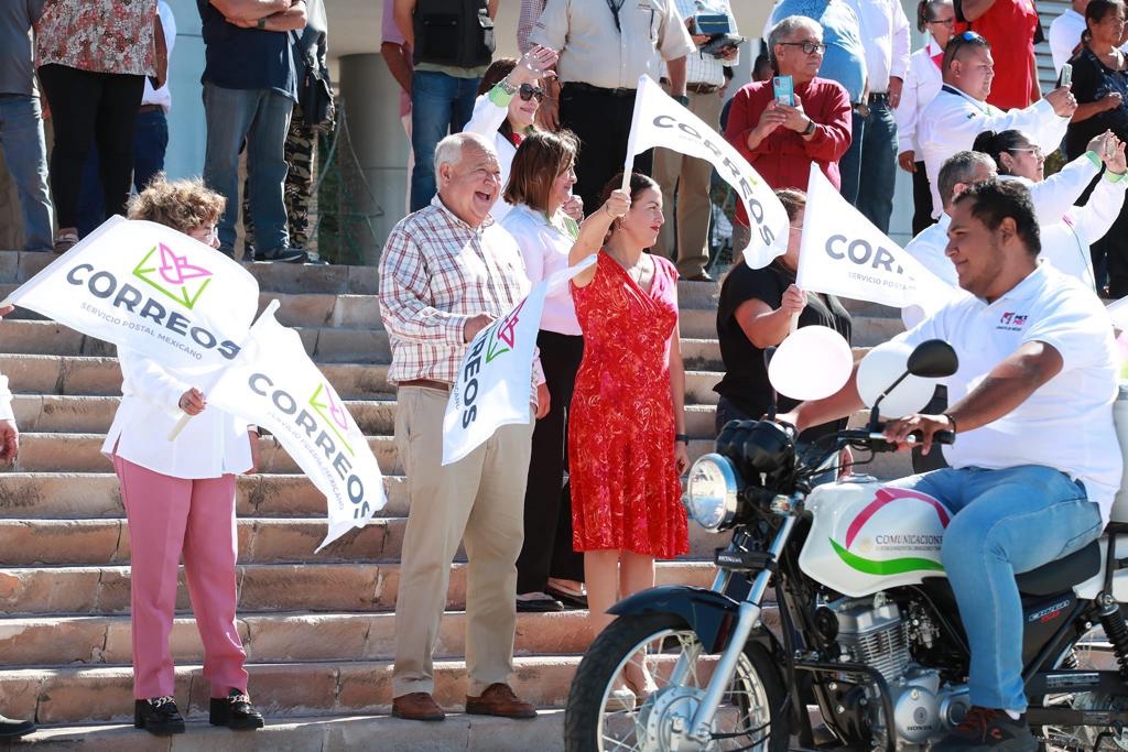 El gobernador de Baja California Sur Víctor Manuel Castro Cosío y la directora general del Servicio Postal Mexicano, Rocío Bárcena Molina, hicieron entrega de 15 motocicletas nuevas a carteras y carteros a fin de reforzar la distribución de mensajería y paquetería en Baja California Sur.